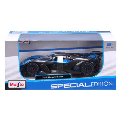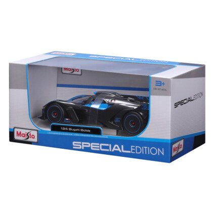 Bugatti Bolide modellbil i skala 1:24 fra Maisto. Denne detaljrike diecast-modellen gjenskaper nøye karosseriet til den originale bilen, med hver slanke kurve, linje og vinkel perfekt fremstilt. Den eksepsjonelle oppmerksomheten på detaljer strekker seg over hele chassiset og inn i interiøret, hvor hver eneste del er nøye gjengitt. En elektrostatisk lakkbehandling gir modellen den perfekte finishen.