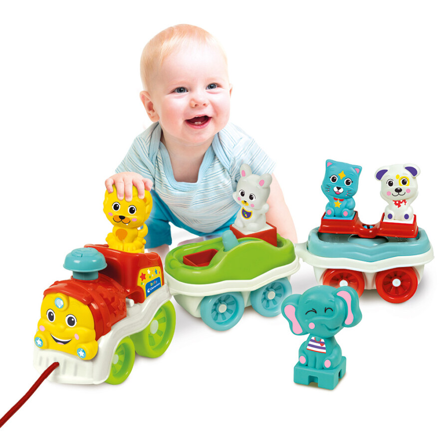 Et morsomt tog fullpakket med aktiviteter for å engasjere små barn, stimulere fantasien og la dem utvikle manuelle ferdigheter. Barnet kan sette de fem dyrene på lokomotivet og trykke på skorsteinen for å lytte til lydene deres eller til morsomme sanger. Barnet kan oppdage dyr, utføre aktiviteter på vognene og slepe toget, utvikle manuelle ferdigheter, koordinasjon og motorikk i prosessen.