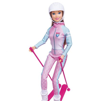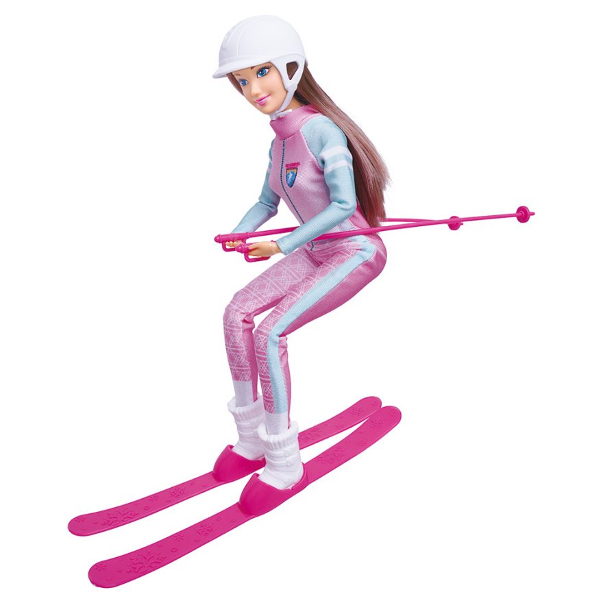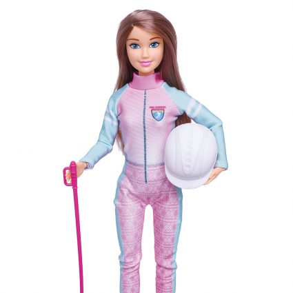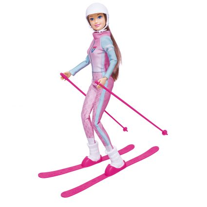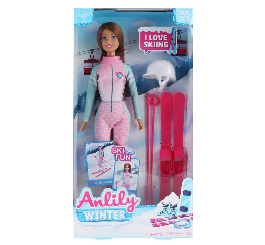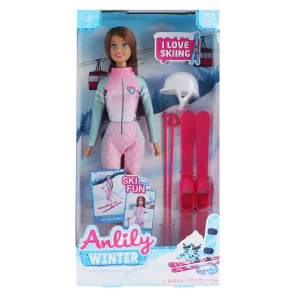 Anlily 29 cm dukke med slalåmski, staver og hjelm.