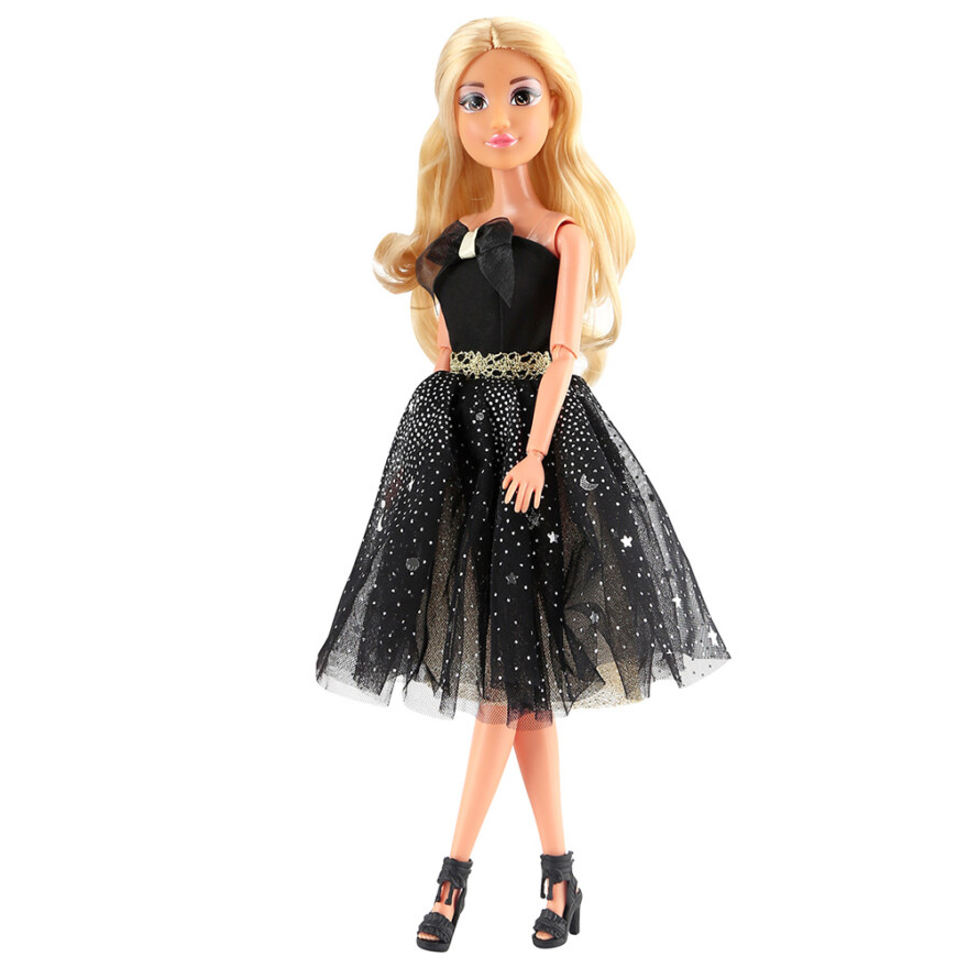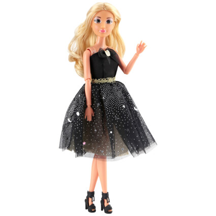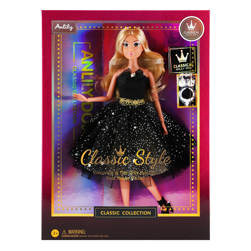 Møt Anlily, den elegante dukken som er klar til å skinne på enhver fest. Hun stråler i sin flotte sorte ballkjole, med glitrende detaljer. Perfekt for små prinsesser som elsker å drømme stort og leke med stil.
