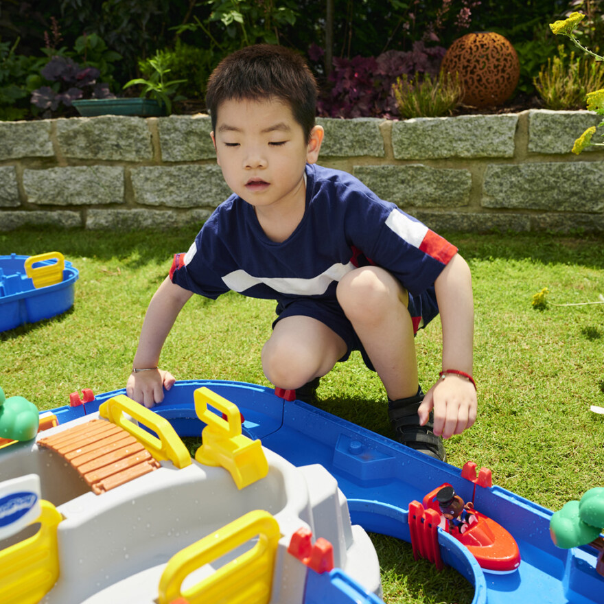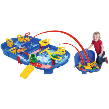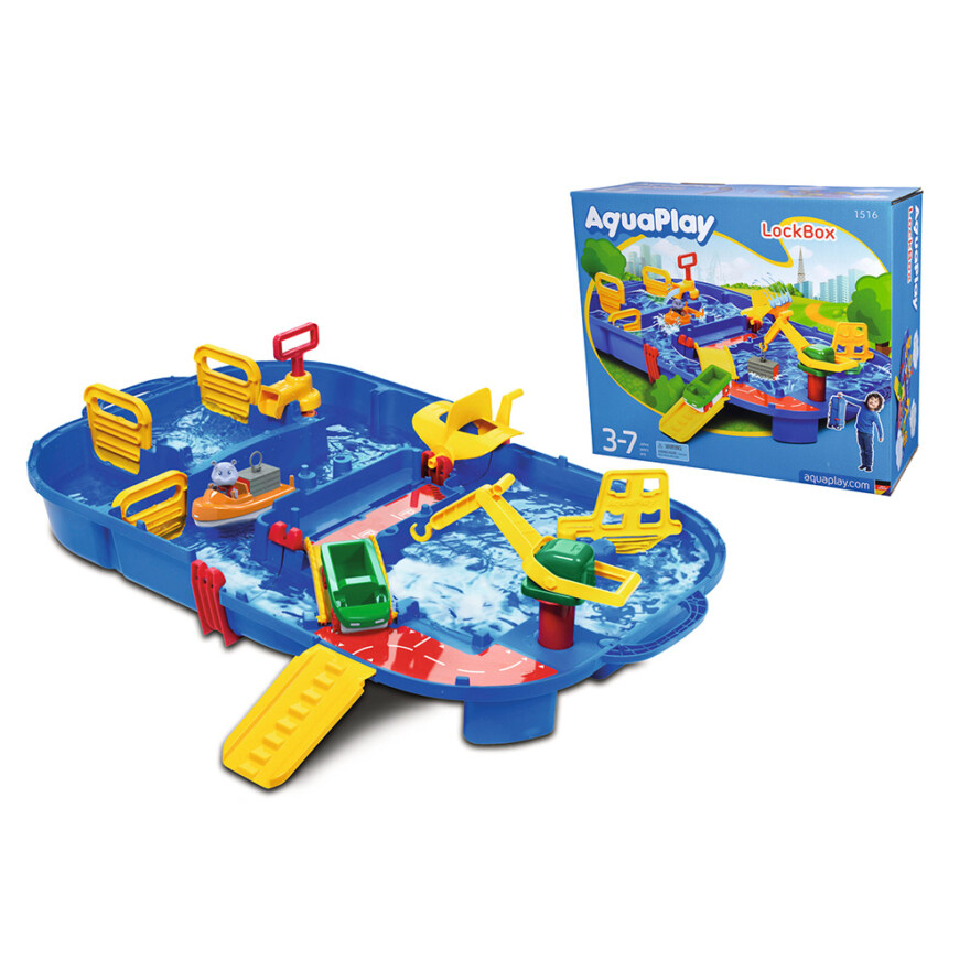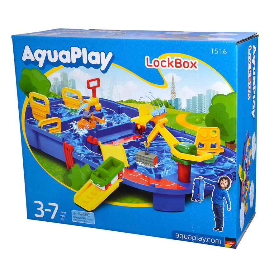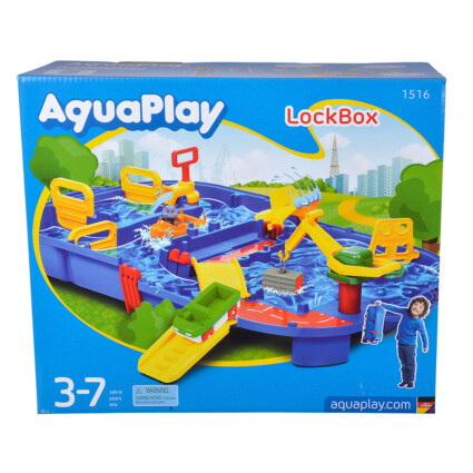 AquaPlays Slussbox tilbyr uendelige lekemuligheter og kan enkelt tas med på ferie eller til venner ved å brette settet som en veske. AquaPlay kan selvfølgelig kombineres med andre av AquaPlay sett og utvidelsesdeler.