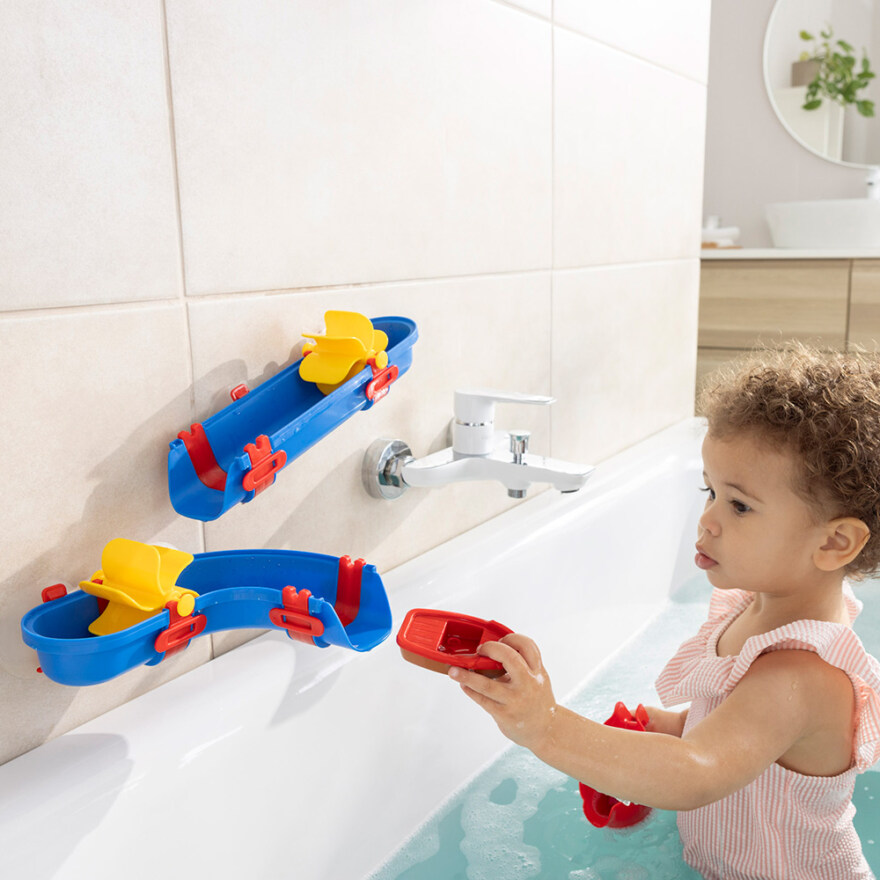 Sploshy kaskade fra AquaPlay er en morsom vannbane som festes på siden av badekaret eller dusjveggen med kraftige sugekopper. Båt med figur og vannkanne medfølger.