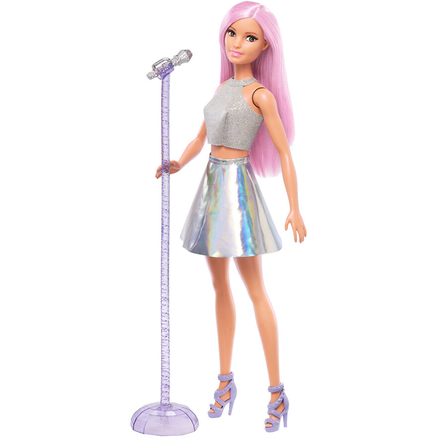Barbie-yrkesdukkene inspirerer barn til å drømme stort og sikte høyt! Hver dukke kan oppnå målene sine iført jobbantrekk og tilbehør, og er klare til å utføre arbeidet sitt. Det er mange karrierer å utforske. Grip mikrofonen og del rampelyset med Barbie-popstjernedukken. Hun er iført et antrekk som vil glitre på scenen, og leveres med mikrofon og stativ. Det lange rosa håret hennes har også alle de riktige tonene! Utforsk og samle alle Barbie-yrkesdukkene og -lekene, for når barna leker med Barbie, ser de for seg alt de kan bli.