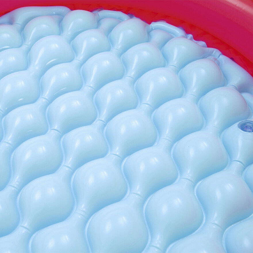 Det lekne utseendet stimulerer barnas fantasi og skaper en glad atmosfære i hagen. Det myke, oppblåsbare gulvet garanterer ikke bare ekstra komfort, men gjør også monteringen til en barnelek. Bare blås den opp, fyll den med vann og la moroa begynne!