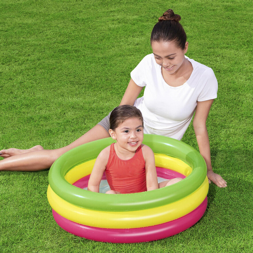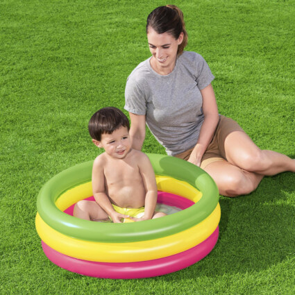 Gjør deg klar for gledelig vannmoro med Bestway® Paddling Pool Swim Squad– den ultimate kilden til sommermoro for de minste! Med en diameter på 70 x 24 cm er dette plaskebassenget perfekt størrelse og sørger for bekymringsløse timer i vannet. Swim Squad plaskebassenget er utviklet for små vannelskere, og har et livlig, fargerikt design med 3 like store luftringer.