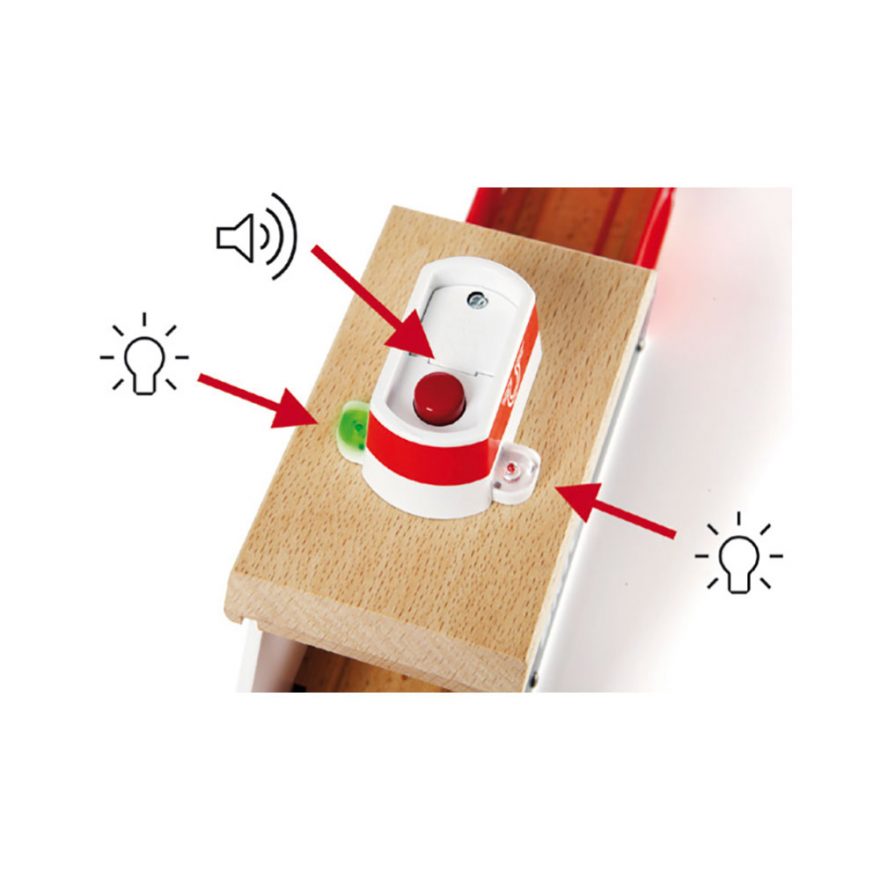 Skip ohoi! Tog går ikke på vann, men ferjer gjør. Transporter togene over på tørt land med BRIO ferje. Funksjonen lys og lyd aktiveres ved å trykke ned knappen. Med de to med følgene dokking sporene er ferjen åpnet ved ankomst.