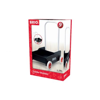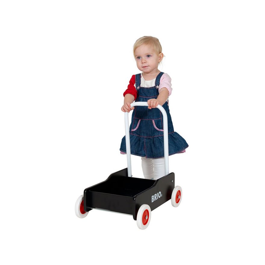 Den klassiske BRIO lær og gå vognen i tre. Med justerbart håndtak og brems. Veldig praktisk til å frakte leker med for de små.