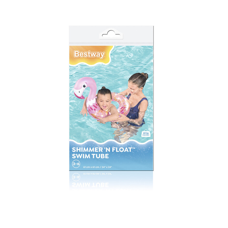 Gli avslappet inn i hver sommer med denne glitrende Bestway-baderingen! Disse svømmende fuglene med sin lange, elegante hals er perfekt for å holde eller lene seg på. Ringen er fylt med skimrende glitter som garantert som vil lyse opp et hvert sted. Velg mellom svane eller flamingodesign.