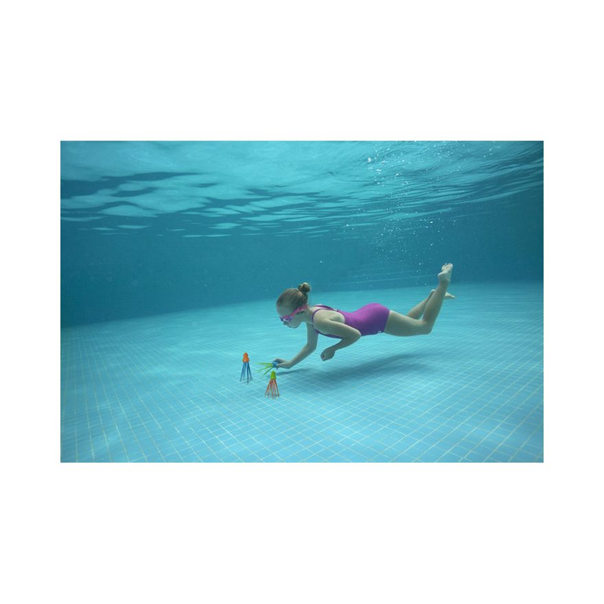 Disse Speedy Squid dykkelekene er anbefalt av svømmeinstruktører for å bygge selvtillit og koordinasjon i vannet. I tillegg gjør de lyse fargene at dem er enkle å få øye på og ta tak i. Disse dykkelekene er flotte for bassenget, og de er også flotte leker å leke med under bading!