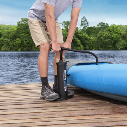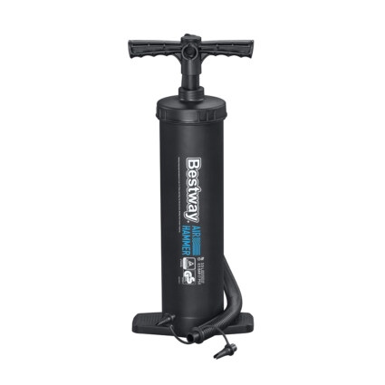 Den 48 cm lange Bestway pumpen gir enkel oppblåsing og tømming av oppblåsbare bedeleker. Pumpen har et slagvolum på 3,5 liter. Den leverer en kontinuerlig luftstrøm både når den beveger seg opp og ned, noe som gir raskere oppblåsing. Inkludert tre universelle ventiladaptere.