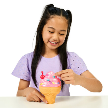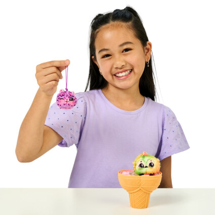 Moroen begynner når barnet ditt fjerner toppen av lekeisen og oppdager 2 ingredienser og en leke-bærnøkkel. Begynn å blande og se magien skje! Legg ingrediensene i isen, sett islokket tilbake, og trykk og vri den spesielle bær-nøkkelen. Nå er det tid for å løfte lokket! Wow! 2 supersøte, duftende overraskelsesplysdyr! Hvilke vil du finne?