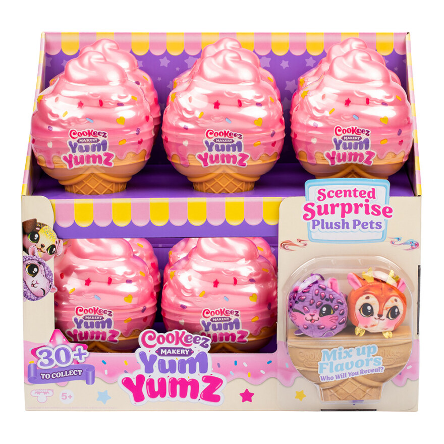 Cookeez Makery Yum Yumz er fylt med moro og deilighet, og Yum Yumz 2 pk. gir dobbelt så mye moro med 2 supersøte overraskelser inni iskremvaffelen! Disse gledelige iskremvaflene er fylt med de søteste overraskelsene. Nå kan du legge til ingredienser for å lage 2 deilig duftende plysjdyr!