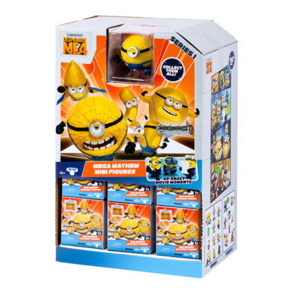 Minions er tilbake – bedre enn noen gang! Nå kan barna gjenskape morsomme scener fra Despicable Me 4 hjemme mens de søker etter og samler på mystiske Mini Minions-karakterer! Disse detaljerte 5 cm samlebare leketøysfigurene kommer i hemmelig emballasje.