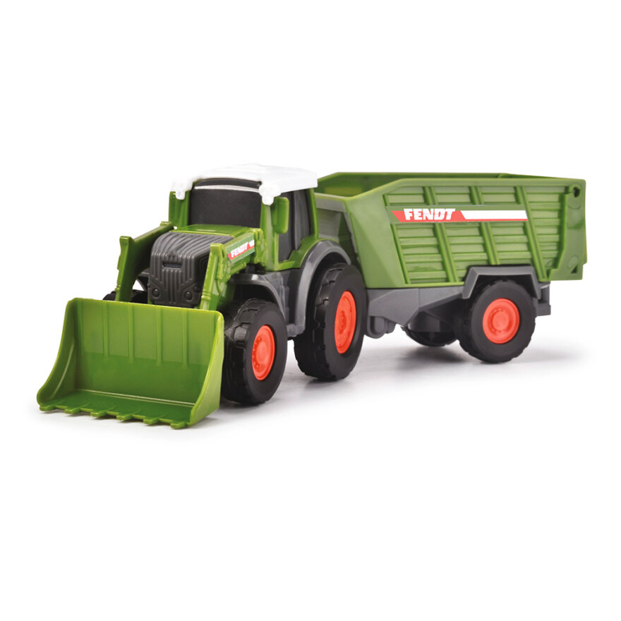 - 5-pk: Inkluderer Volvo dumper og gravemaskin, Fendt traktor med tilhenger, Mercedes G-klasse politibil og Antos/Rosenbauer brannbil
