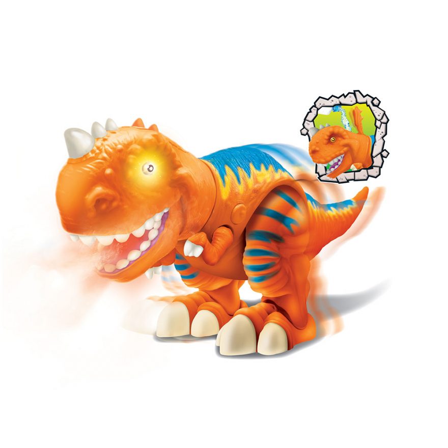 En dinosaur for de minste. Denne dinosauren går bortover gulvet og har lyd og lys. Dersom du fyller dinosauren opp med vann kan den også blåse ut damp!