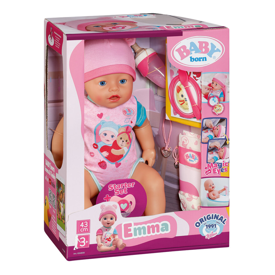 - BABY born Emma dukke 43 cm inkl. bukse og caps- potte (vannmagi), bleie, tallerken (matemagi), skje, flaske, magisk dukke