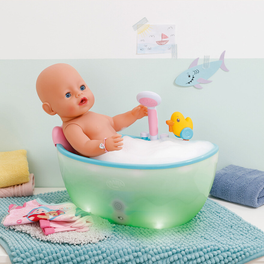 BABY born Emma bringer mye moro inn i barnehagen med sine 10 naturtro funksjoner: drikke, bading, kontrollert pottetrening, lukke øynene ved å snu dukken og mye mer. Hun spiser fra den lille tallerkenen sin, der maten hennes er synlig takket være matmagien. Jeg lurer på hva som skal til i dag?
