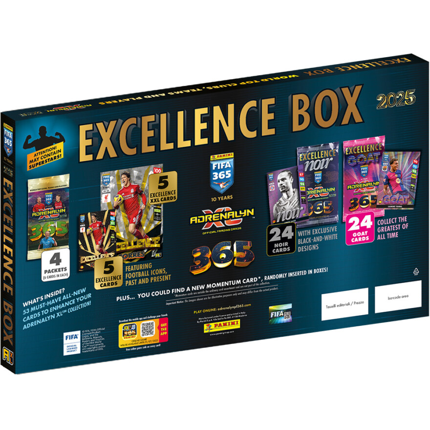 Hev din Panini FIFA 365 Adrenalyn XL™ 2025-samling med et eksklusivt utvalg av kort som du ikke finner andre steder! Enten du er en erfaren samler eller bare har begynt, er Excellence-boksen et must-ha-tilskudd!