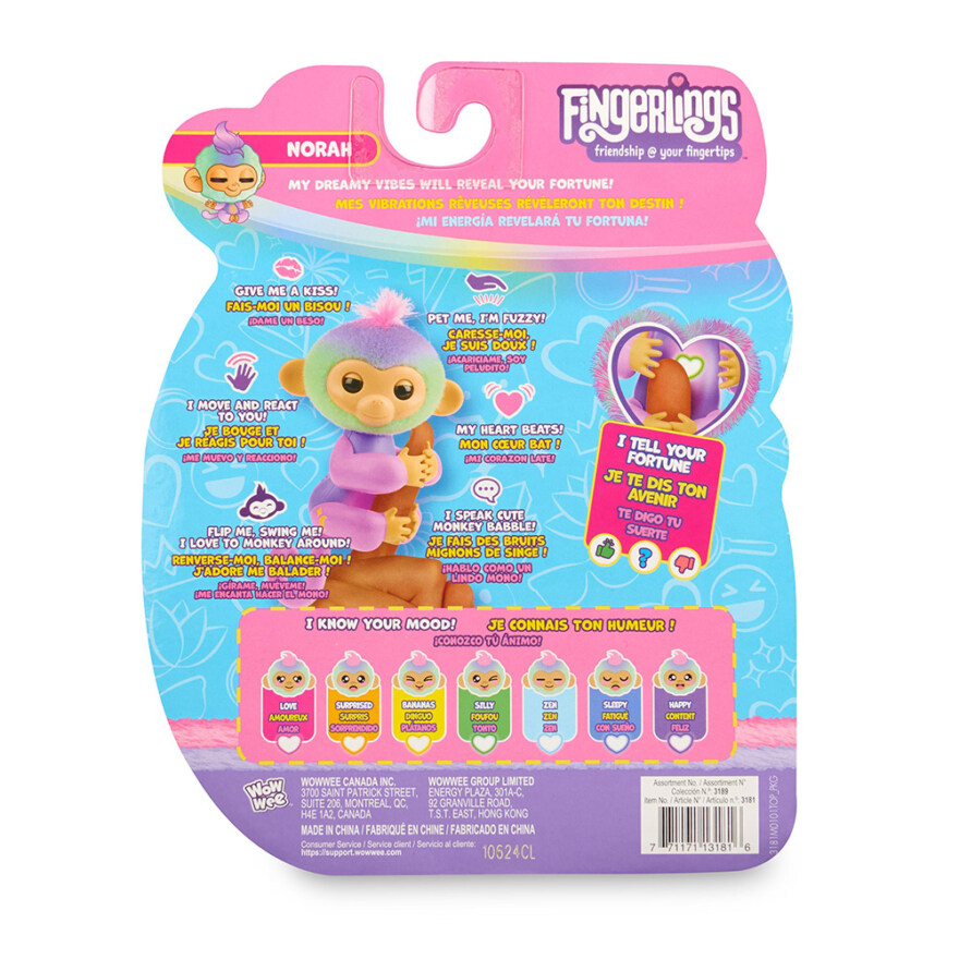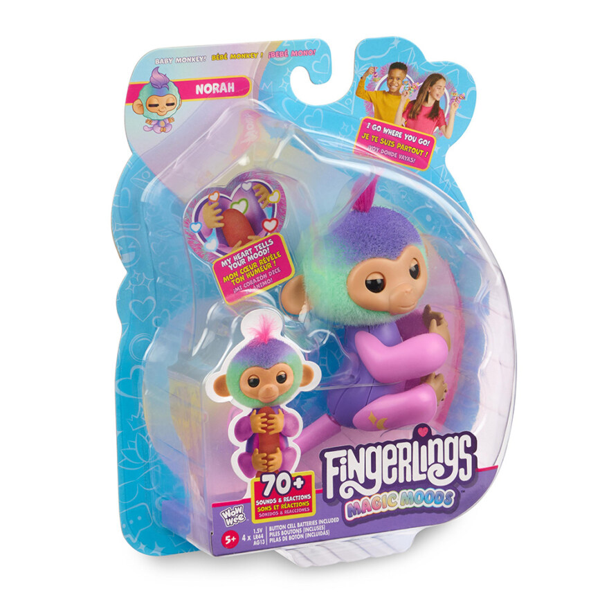 Med Fingerlings Magic Moods vil du oppleve at du har enda mer forbindelse til figuren takket være RGB-lyset. Apen vil med hjelp av RGB-lyset forteller deg hvilket humør du er i når du har tatt vekk fingeren. Apen har og en fortune telling mode så du kan stille den et hvilket som helst spørsmål.