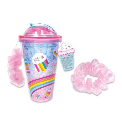 Sett koppen i fryseren i 2-4 timer og fyll den deretter med din favorittdrikke, og nyt en forfriskende drikk. Matchende hårstrikk medfølger.