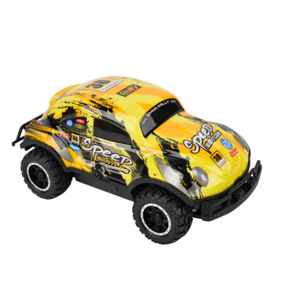 Kul bil med lengde på 17 cm, rask akselerasjon og LED-lys i kroppen for fint lys. Perfekt for lek innendørs eller utendørs på tørre og rene overflater.