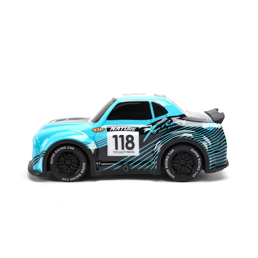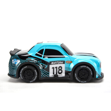 G4P 1:28 Cartoon Racing Car er en radiostyrt bil med en stilig karosseri som etterligner en rallybil. Med en lengde på 16 cm er den perfekt for innendørs lek og gir timevis med moro for barn.