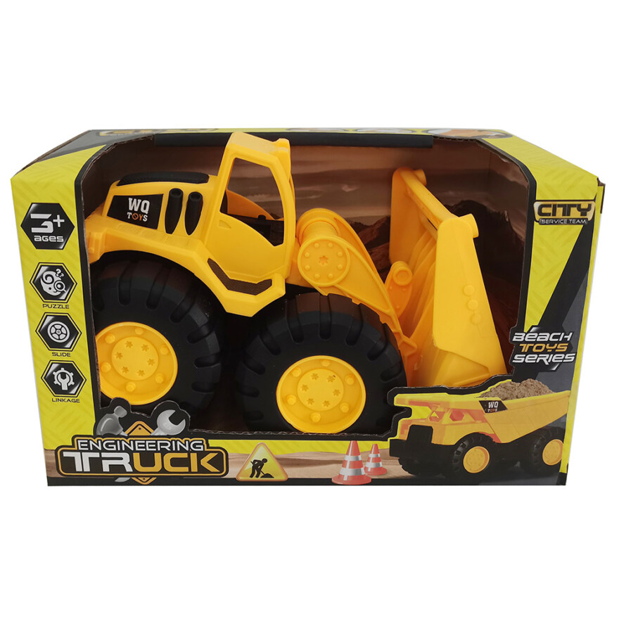 En robust og realistisk hjullaster, perfekt for små byggeentusiaster! Denne hjullasteren er 19 cm lang og har bevegelige deler som gjør den ideell for å laste og transportere materialer i lekens verden.