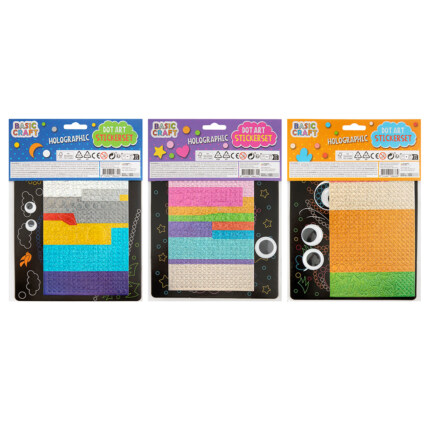 Lag flotte kunstverk med dette klistremerkesettet. Plasser de holografiske merkene i henhold til mønsteret på klistremerkearket for å lage et vakkert bilde! Bildet er 22x18 cm og fortjener utvilsomt en fin plass på rommet ditt!