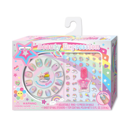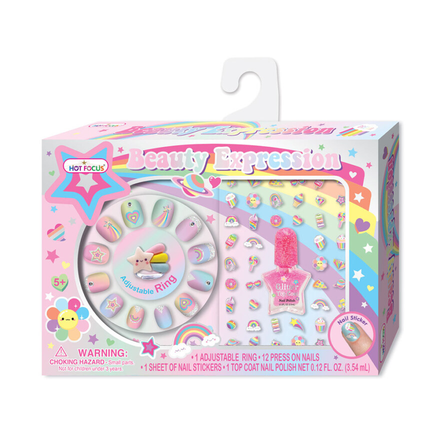 Uttrykk deg selv med dette morsomme og trendy nail art-settet. Søte "trykk-på" negler og en rekke negleklistremerker å velge mellom.