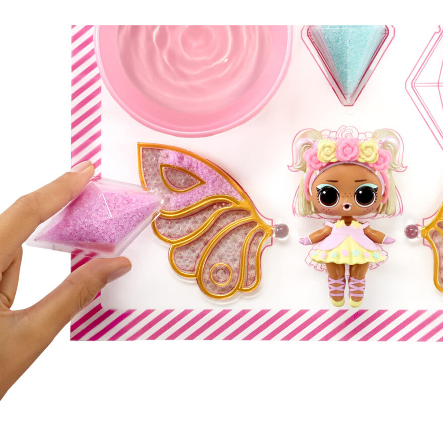 Opplev en helt ny måte å leke på med L.O.L. Fairy Tots! Disse fortryllende dukkene fra L.O.L. Surprise! lar barn fra 4 år og oppover tilpasse sine egne fevinger ved å bruke den medfølgende "fe-støv"-miksen og vann. Perfekt for å stimulere kreativitet og fantasi, L.O.L. Fairy Tots gir timevis med magisk lek.