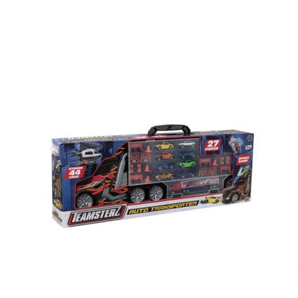 Teamsterz transporter med 8 biler inkludert. Transporter biler fra et sted til et annet, lek med bilene og pakk de enkelt vekk i transporteren.