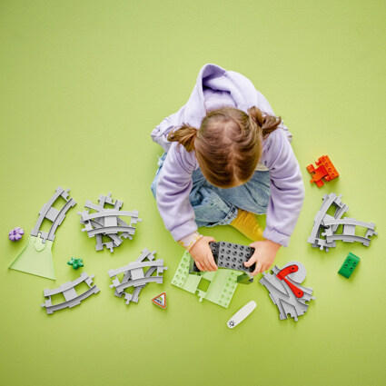 - Ferdighetsutviklende sett med ekstraskinner som gir små barn enda flere togeventyr