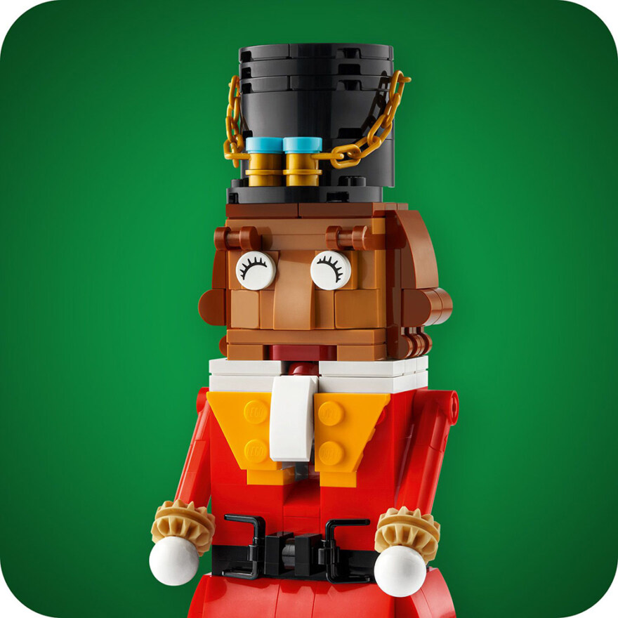 Dette LEGO julesettet er fullt av magiske detaljer og gir jenter og gutter muligheten til å bygge forskjellige versjoner av den kjente Nøtteknekker-figuren og tilpasse den med elementer som øyne og øyevipper. Figuren er iført den velkjente, røde uniformen med flosshatt, og den har armer og en munn som kan beveges, og som inspirerer barn til å finne på gøyale julefortellinger. Når leken er over for dagen, kan Nøtteknekker-figuren brukes som julefin utstillingsmodell og spre julestemning hjemme.