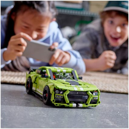 - Autentisk design – denne byggbare modellen er en realistisk kopi av virkelighetens Ford Mustang Shelby® GT500®, et ikon blant biler