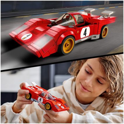 - Inneholder en LEGO® versjon av Ferraris 512 M fra 1970 samt en Ferrari-sjåfør med racerdrakt, parykk og hjelm