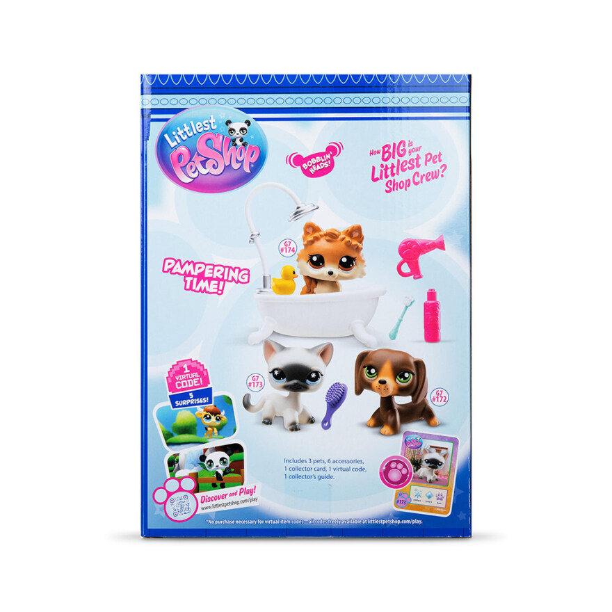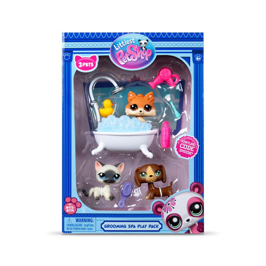 Gi kjæledyrene dine en herlig spa-dag med Littlest Pet Shop Grooming Spa Play Pack! Dette settet inkluderer 3 søte bobblin' kjæledyr - #172 Dachshund, #173 Siamesisk Katt og #174 Pomeranian. Gjør dem skinnende rene med 6 fargerike spa-tilbehør, inkludert en børste, hårføner og en gul badeand for ekstra moro under badetiden! Gjør leketiden magisk med Littlest Pet Shop Grooming Spa Play Pack!
