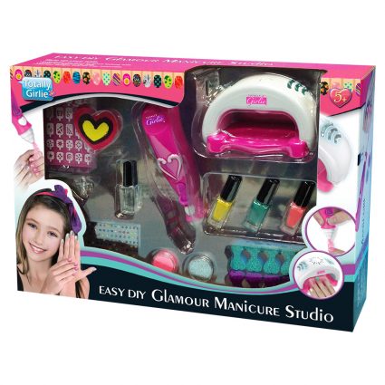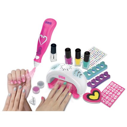 Manikyrsettet inneholder blant annet neglelakk, tørker, klistremerker å dekorere med og glitterpenn.