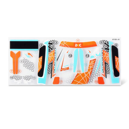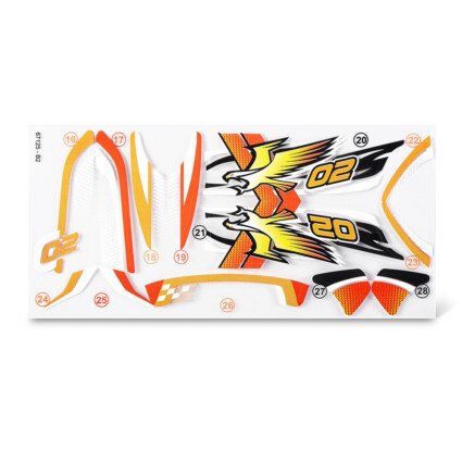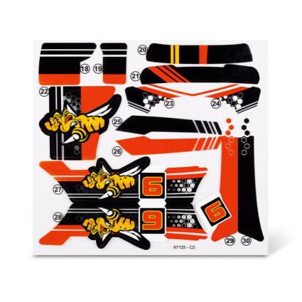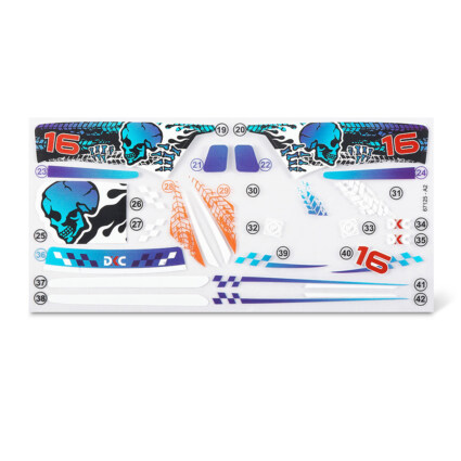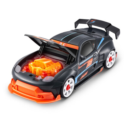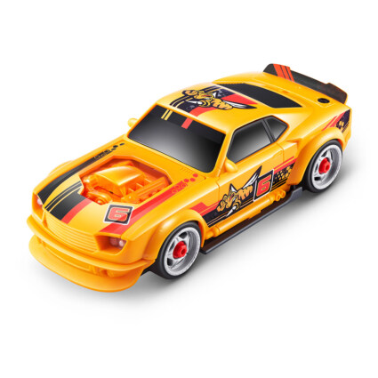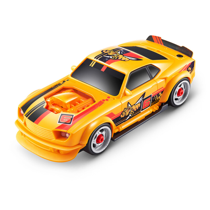 - Inkluderer 20 deler: Motor, chassis, fire hjul, to karosserier, slim og klistremerkeark