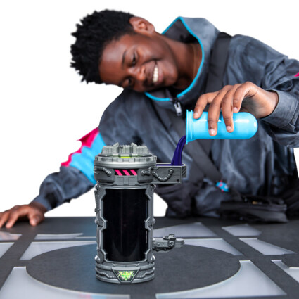 MrBeast Lab Mutator Metallic Panther! Utfør eksperimentet og skap en MrBeast-inspirert actionfigur! Den Metalliske Panter Mutant er 13 cm høy og har over 20 bevegelsespunkter!