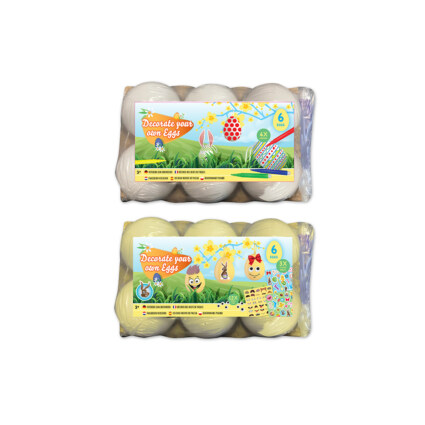 Dekorer dine egne påskeegg! 6 pakning med egg, og 5 tusjer i ulike farger.