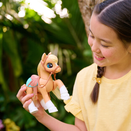 Den nye magiske ponnien fra Pets Alive har over 13 forskjellige måter å samhandle og leke på. Inkludert stall, sal og hodelag.