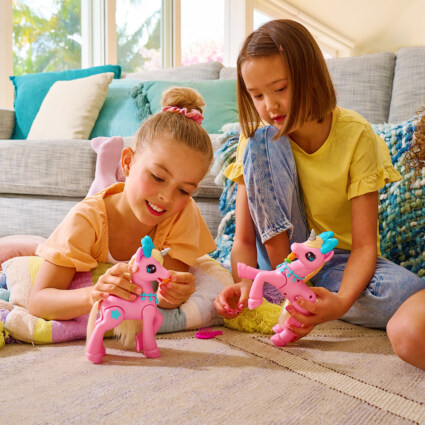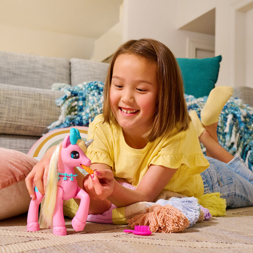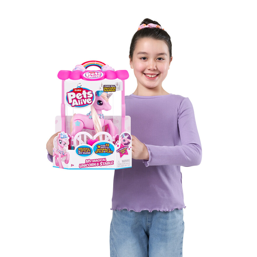 Den nye magiske enhjørningen fra Pets Alive har over 13 forskjellige måter å samhandle og leke på. Inkludert stall og et magisk horn som lyser opp.