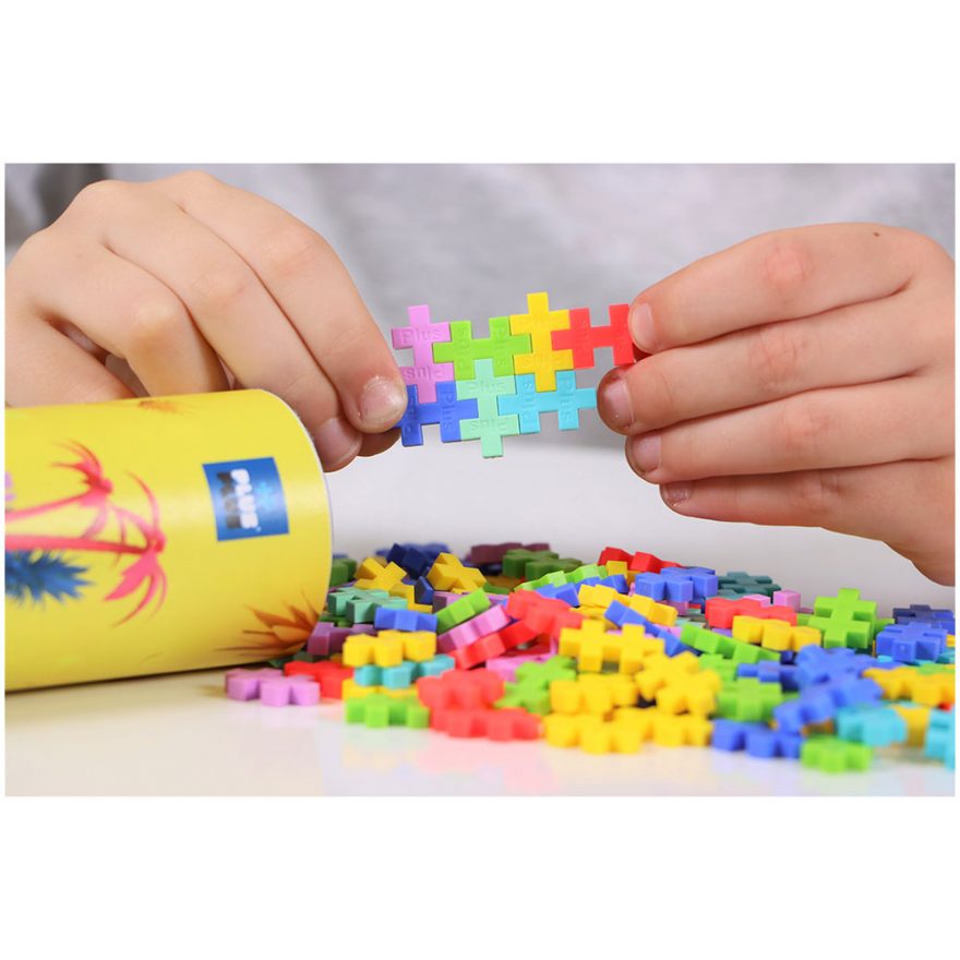 Dette Plus-Plus produktet leveres i et rør som er perfekt når man skal reise og som kan brukes til oppbevaring av dine Plus-Plus brikker. Denne tropiske fargemiksen inneholder 100 Plus - Plus brikker.