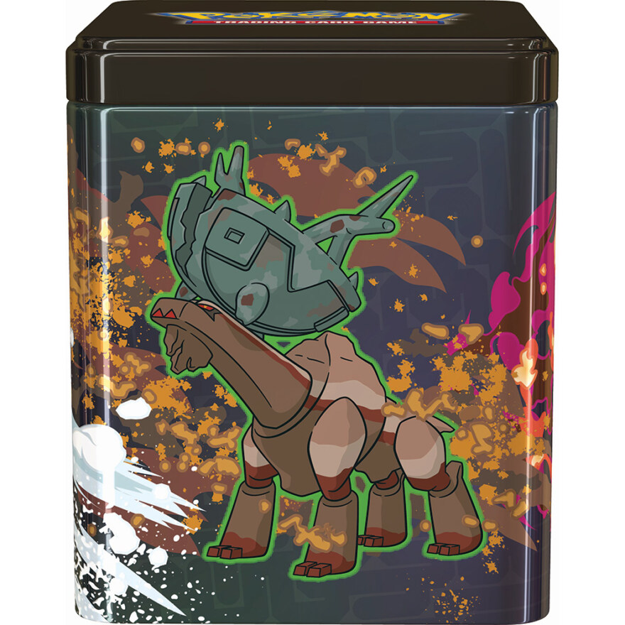 Denne praktiske Pokémon TCG: Stacking Tin kan stables pent for orden og inneholder: