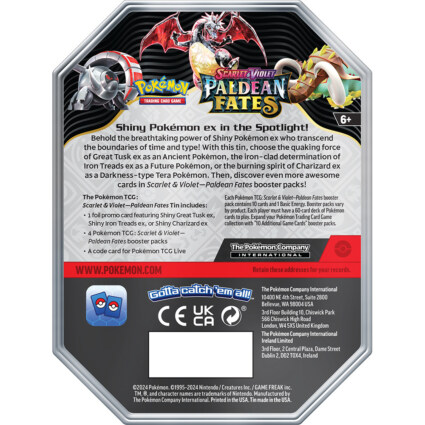 Pokémon TCG: Scarlet & Violet—Paldean Fates Tin inkluderer:
