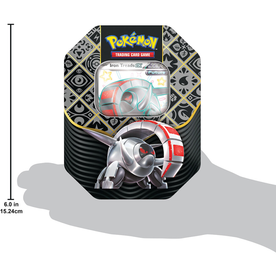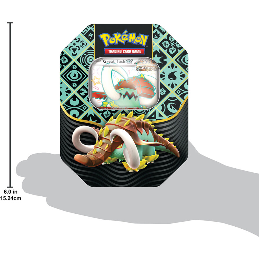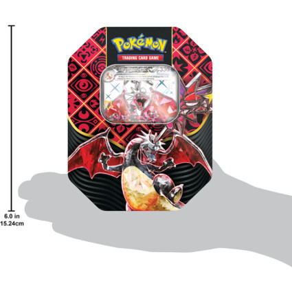 Se den fantastiske kraften til Shiny Pokémon-eks som overskrider grensene for tid og type! Velg skjelvingskraften med dette tinnet av Great Tusk-eksen som en gammel Pokémon, den jernkledde besluttsomheten til Iron Treads-eksen som en fremtidig Pokémon, eller den brennende ånden til Charizard-eksen som en Darkness-type Tera Pokémon. Deretter kan du oppdage enda flere fantastiske kort i Scarlet & Violet – Paldean Fates booster-pakker!