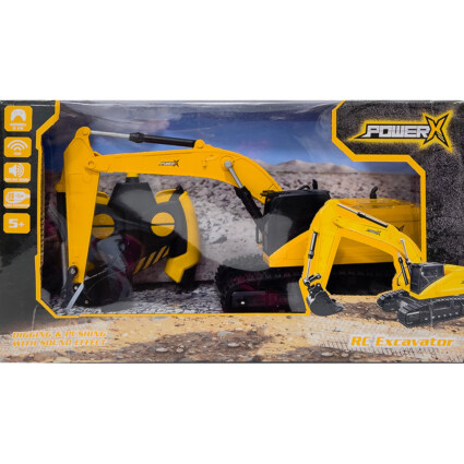 Førerhuset på PowerX RC Gravemaskin kan roteres manuelt, og gravemaskinen lager realistiske simuleringslyder når den arbeider. Gravemaskinen er oppladbar og har en ladetid på ca. 120 minutter. Etter lading kan den arbeide i 20–25 minutter. Den kan styres på opptil 15 meters avstand med en frekvens på 40 MHz.