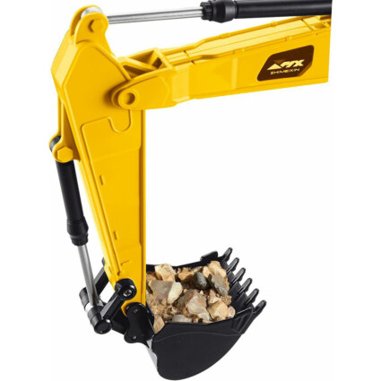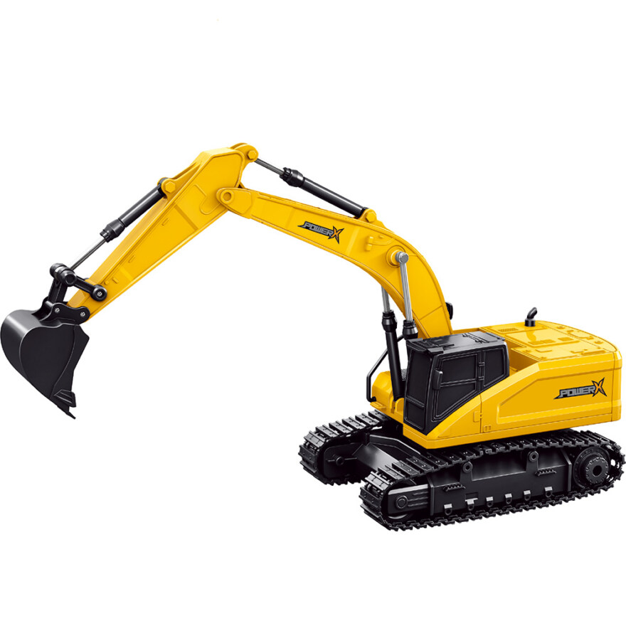 Den fjernstyrte gravemaskinen har ekte beltebånd, slik at den kan kjøre på gjørmete underlag, og gravemaskinarmen kan styres til å kjøre forover, bakover og svinge til venstre og høyre. Ved hjelp av fjernkontrollen kan den lille entreprenøren også få gravemaskinen til både å grave og skyve med den store gravearmen og skuffen. Den kraftige gravearmen er utstyrt med hydrauliske sylindere som gir jevne bevegelser.