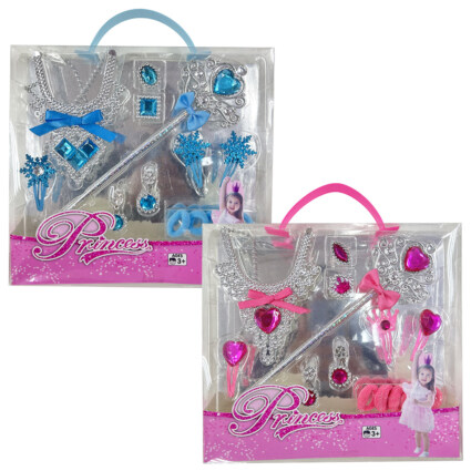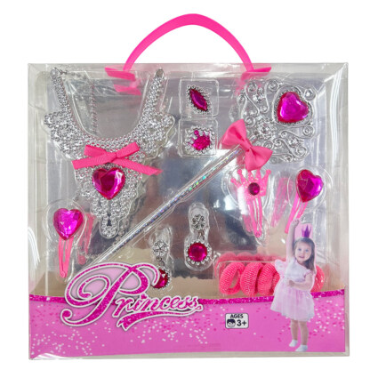 La fantasien få fritt spillerom med dette nydelige Prinsesse-settet. Dette eventyrlige settet er perfekt for alle små prinsesser som elsker å kle seg ut og leve seg inn i magiske roller. Settet inneholder alt en ekte prinsesse trenger for å skinne på slottet: