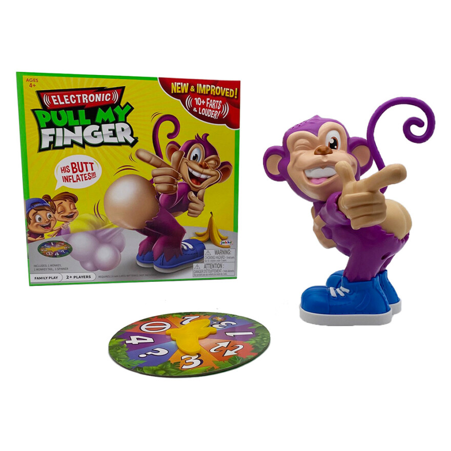 Man vet aldri når den eksploderer! Det nye og forbedret elektroniske Pull My Finger har nå over 10 høyere promper for å gi deg et enda mere spennende og morsomt spill!
